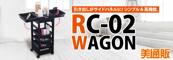 「美通販」では、スッキリボディに機能満載な「RC-02 ワゴン」を、業界最安値を目指した美通販会員特別価格でご提供いたします。この機会にサロン様の効率アップ等のお役に立てて頂きたい次第です。