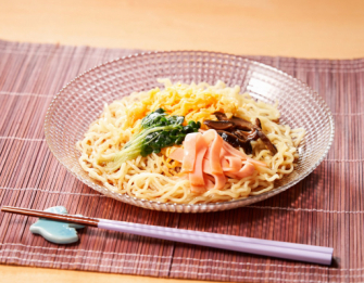 スープがよく絡みやすいように、やや細めのちぢれ麺を採用。昨年よりもさらなる美味しさを追求し、解凍した時の状態を考慮しながら特別な方法で冷凍しました。スープは、醤油ベースにごま油、隠し味にレモンを加え、コクは残しつつまろやかな味わいに仕上げました。具材は、錦糸卵、味付け椎茸、ロースハム、かいわれ、と彩りゆたかで、シンプルな具材。コクのあるスープとごま油の香りに包まれて一口ごとに異なる様々な味の景色をお楽しみください。