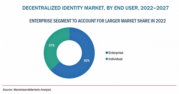 分散型IDの市場規模は、2022年の2億8,500万米ドルからCAGR88.7%で成長し、2027年には68億2,200万米ドルに達すると予測されています。分散型ID市場の成長は、既存のID管理手法の非効率性、セキュリティ侵害やID関連の不正行為の増加、IDの使用を完全に制御できるエンドユーザーのメリットなどにより、牽引されています。
