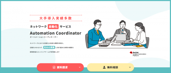 ネットワーク自動化を推進するには、技術だけにとどまらず、業務プロセスの見直しや組織文化の醸成など、様々な要素が必要となります。ネットワーク自動化を実現する上で必要となる様々な要素をコーディネートし、時には私達にお任せ頂き、時にはお客様に伴走するーーこういったわたしたちの姿勢を表現するため、「Automation Coordinator」という名前に改称いたしました。