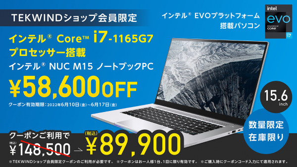 テックウインド株式会社(代表取締役社長:王夢周、本社:東京都文京区)が運営しているTEKWINDショップはこのほど、インテル(R) CoreTM i7搭載のノートPCを台数限定で販売いたします。