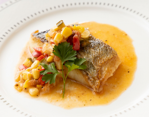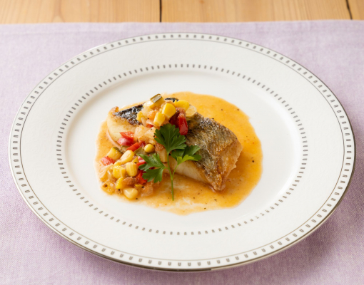 ■鳥取県産スズキのソテー 夏野菜のトマトソース