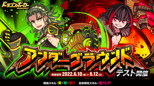 株式会社アソビズム(本社:東京都千代田区、代表取締役:大手智之)は、App Store・Google Playにて好評配信中のリアルタイム合体カードバトル『ドラゴンポーカー』で、2022年6月10日(金)より「アンダーグラウンド」をテスト開催いたします。