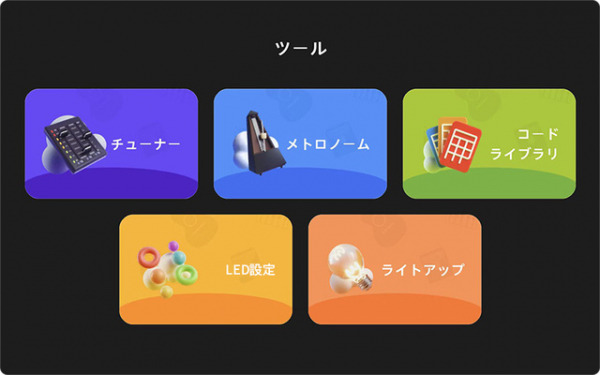 ▲チューナーやメトロノーム等の充実のサポートツールを搭載!余計なストレスなく、常に最高の環境で練習に集中することができます。