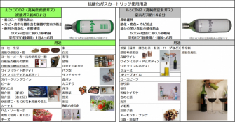開栓したワインでは注ぐ度、保管前にガス噴射し、キャップをして冷蔵保存で約48日間、深煎り焙煎豆ではキャニスターにガス噴射して、蓋を締め室温保存で90日以上、風味を維持しながら酸化・変色を抑え、新鮮に保ちます(ルンゴN2ガスを使用した場合)。その他、食材・生鮮食品・加工品・調理品を含むあらゆる飲食品に使用可能です。