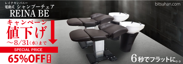 今回「美通販」では、「電動式シャンプーチェア REINA BE」を、通常美通販価格よりさらにお値下げした特別価格にてご提供いたします。
