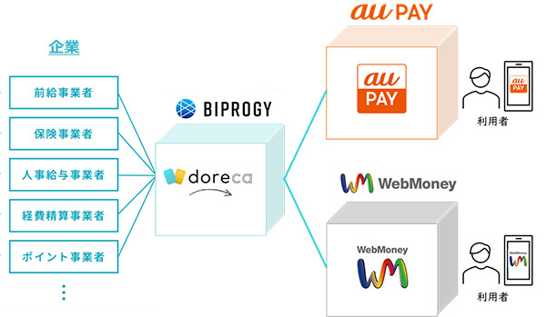 KDDI株式会社(本社:東京都千代田区、代表取締役社長:髙橋 誠、以下 KDDI)、auペイメント株式会社(本社:東京都港区、代表取締役社長:田中 正信、以下 auペイメント)、BIPROGY(ビプロジー)株式会社(本社: 東京都江東区、代表取締役社長:平岡 昭良、以下 BIPROGY)は2022年6月15日から、決済サービス「au PAY」およびauペイメントが提供する「WebMoneyプリペイドカード」とBIPROGYが提供する価値交換基盤「doreca(ドレカ)」の連携を開始します。これにより、「doreca」を導入する企業から個人へ支払われる経費精算金や保険金などを、「au PAY」や「WebMoneyプリペイドカード」で直接受け取ることができるようになります。