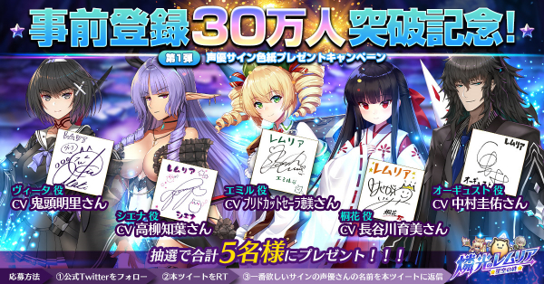 ■事前登録者数が30万人を突破! 「声優サイン色紙プレゼントキャンペーン」を開催♪