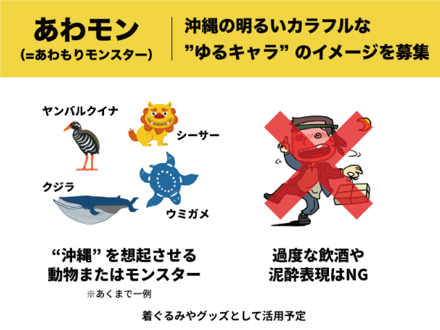 募集テーマは、「泡盛」をイメージしたマスコットキャラクター・あわモン(あわもりモンスター)。