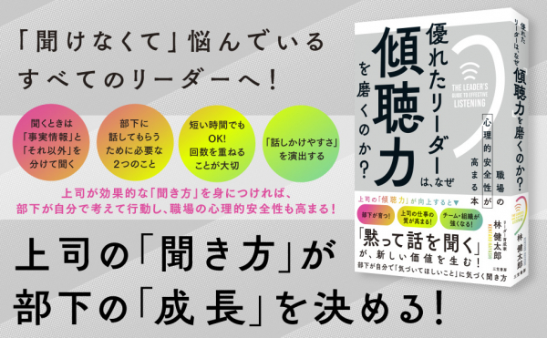 新刊書籍『優れたリーダーは、なぜ「傾聴力」を磨くのか?』(著:林 健太郎)を6月29日(水)に発売いたします。