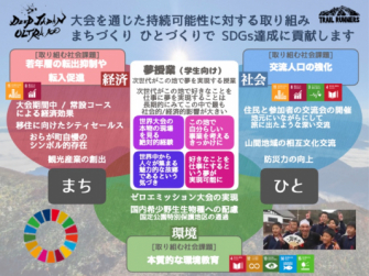 このレースはまた、SDGs(持続可能な開発目標)を意識した大会でもあります。「残していいのは感動だけ」を合言葉にゴミを出さないよう努め、自然環境を守るためにコース整備を行うクリーンアクションイベントを実施するなど、トレイルランレースを通してさまざまな課題に取り組んでいます。