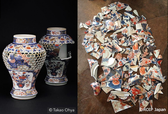 本展覧会では、日本国内の古伊万里の名品とともに、ロースドルフ城の陶磁コレクションを展覧し、さらには、最新の修復技術により「破壊」された陶片から、かつての作品を復元「再生」した作品を公開しています。