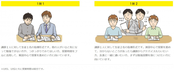 四谷学院の完全個別指導は、クラス授業などとはまったく異なり、先生一人に生徒一人(1対1)、または先生一人に生徒二人(1対2)の形で授業を行います。苦手科目の克服、また得意科目にさらに磨きをかけるのに最適です。