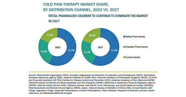 冷感による鎮痛療法の市場規模は、2022年の18億米ドルからCAGR5.1%で成長し、2027年には24億米ドルに達すると予測されています。同市場の成長は、老年人口の増加と筋骨格系疾患の有病率の増加、および冷感鎮痛療法製品の入手のしやすさにあります。