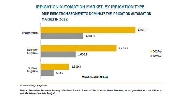 灌漑自動化の市場規模は、2022年の42億米ドルからCAGR17.2%で成長し、2027年には92億米ドルに達すると予測されています。これは、発展途上国における農業機械化のための政府支援、スマート灌漑技術の採用、節水の必要性などにより、牽引されています。
