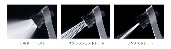 水流:3タイプ(トルネードミスト、スプラッシュストレート、リングストレート)