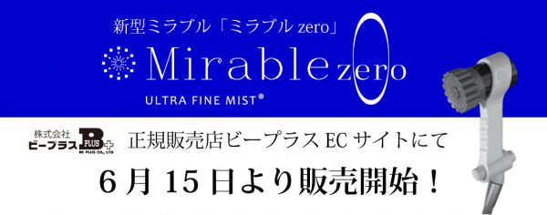 販売御開始から累計5万本を越えたミラブルの正規販売店「株式会社ビープラス」が運営する販売サイトで3種類の水流を切り替えられるミラブルの新型シャワーヘッド『ミラブルzero』が6/15より販売開始されました。