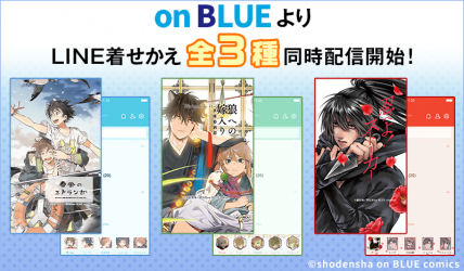 祥伝社×インクルーズが贈るLINE着せかえシリーズ第3弾は、onBLUEより「紀伊カンナ先生」、「犬居葉菜先生」、「藤原旭先生」の3作品がLINE着せかえとなって一斉に新登場です。今後も祥伝社とインクルーズのコラボレーションにより、続々とLINE着せかえの配信を予定しておりますので、是非お気に入りのLINE着せかえを見つけてみてください。