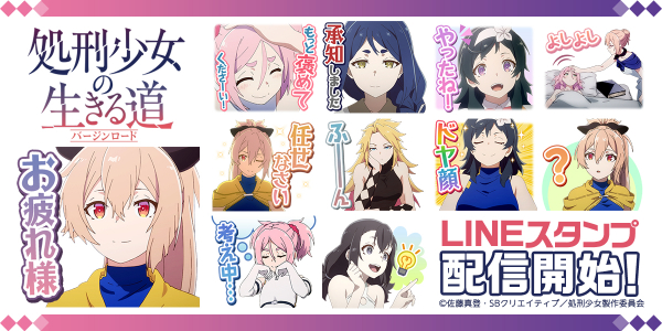 アニメ「処刑少女の生きる道(バージンロード)」のLINEスタンプがインクルーズから登場!アニメのシーンが日常で使いやすいスタンプになりました!是非、アニメ「処刑少女の生きる道(バージンロード)」の世界をお楽しみ下さい。