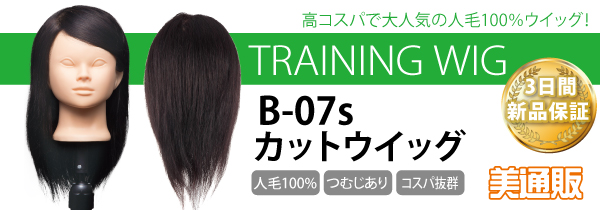 「美通販」では、学生・アシスタントからプロフェッショナルの方々まで、幅広くオススメできるトレーニング用「B-07s カットウイッグ」を、業界最安値を目指した美通販会員特別価格でご提供いたします。仕入れがしやすい低価格設定でご提供することで、理美容業界のすべての方を応援していきたいと考えております。