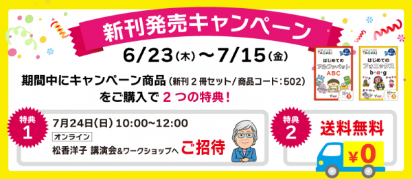 英語教育43年の株式会社mpi松香フォニックス(創立:1979年、代表者:竹村千栄子、以下mpi)は、新刊発売を記念して、新刊セット商品(はじめてのアルファベット TAGAKI/ はじめてのフォニックス TAGAKI )を購入の方を対象にキャンペーンを開催します。