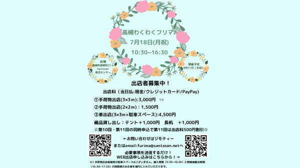 その為、出店者さんから頂いた出店料はすべて地域の方へのイベント告知活動に使用させていただきます。当日、多くの地域の方が来場し楽しんでいただけるよう、ご協力とご理解をお願い申し上げます。