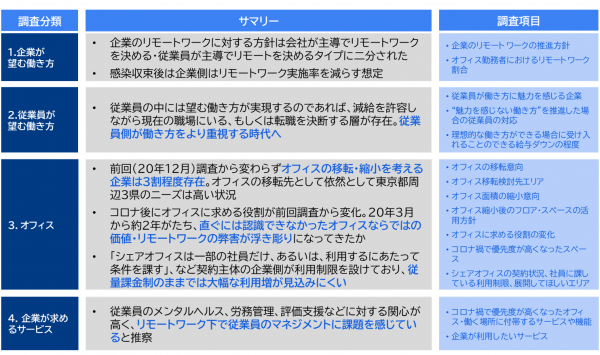 ⇒新型コロナウイルス感染拡大直後では認識できなかった、オフィスならではの価値やリモートワークのメリット・デメリットに各社が気づき始めている