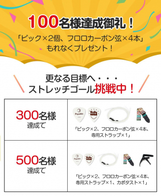 ストレッチゴール2【500名達成】カポタストをプレゼント!