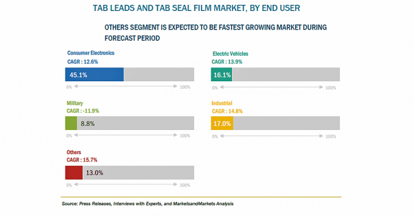 自動車産業は、持続可能なクリーン燃料へとシフトしています。輸送システムは、燃料として石油に大きく依存しており、そのうち約70%が自動車に使用されています。省エネルギー、汚染物質の削減、消費者による電気自動車の採用などの要因が、電気自動車市場の成長を促進すると予想されています。電気自動車は現在、自動車産業と交通システムの未来像として認識されています。電気自動車では、軽量でスペースを有効に活用できるパウチ型電池の採用が進んでいます。このように、パウチ電池の普及がタブリードとタブシールフィルムの需要を拡大させると思われます。