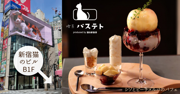 2021年9月16日(木)にオープンした、新宿の新名所「3D巨大猫」が放映されているクロス新宿ビル地下一階にあるレトロモダンな喫茶店。