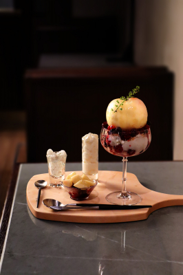 定番となった“追いトッピング”のフレッシュ桃、シソのグラニテ、ホイップクリーム等を随時加えながら、あなただけの味の組み合わせをお楽しみいただけます。