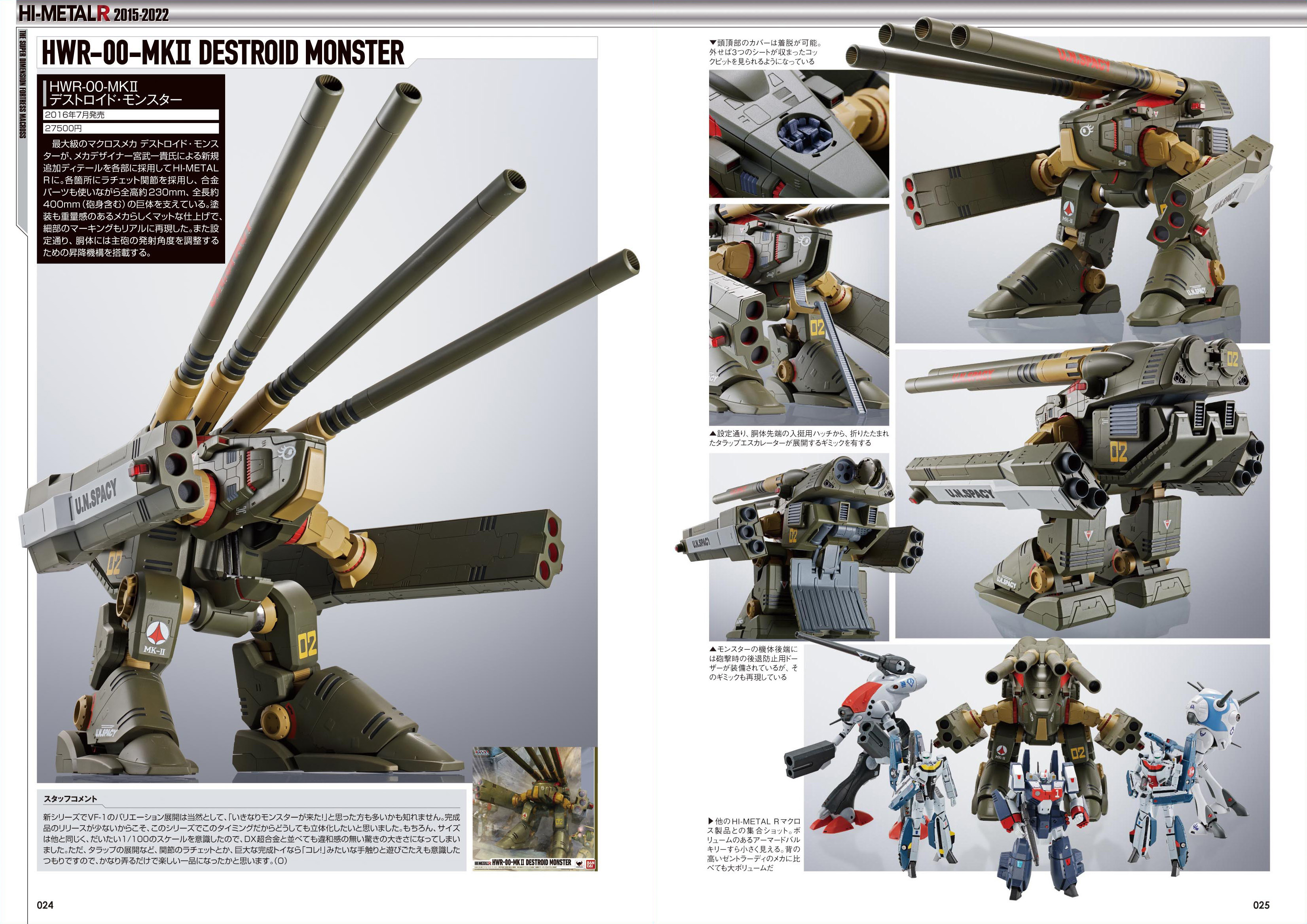 2022年内までに発売される「HI-METAL R」の全アイテムを網羅し、各アイテムのスタッフコメントやパッケージ写真を掲載いたします。前身ブランド「HI-METAL」「VF HI-METAL」のご紹介や、「HI-METAL R」最新情報のチラ見せも!また、大河原邦男氏、宮武一貴氏、河森正治氏のメカニックデザイナーインタビューも掲載いたします!