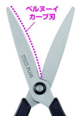 軽い切れ味が特長である、プラス独自の“ベルヌーイカーブ刃”。常に最適な刃の開き角度を保ち、刃の根元から刃先までどの位置で切っても対象物をしっかりキャッチします。