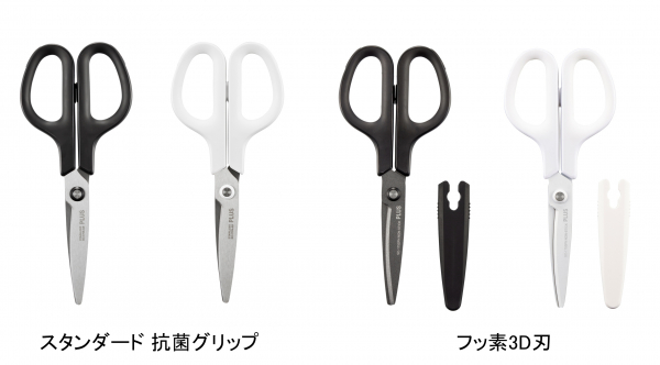 シリーズの優れた性能はそのままに、人気のベーシックタイプ「スタンダード 抗菌グリップ」など4タイプをご用意しました。「フッ素3D刃」は刃の部分も「ブラック」「ホワイト」で、シックな印象。携帯はさみ「ツイッギー」は初めて刃にチタンコートを施しました。