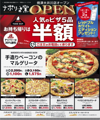 株式会社ストロベリーコーンズ(本社:仙台市青葉区、代表取締役:宮下雅光)が運営する宅配ピザブランド「ナポリの窯」は、「焼津大井川店」を6/30にオープン致します。