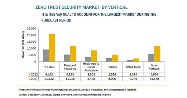 ゼロトラストセキュリティの市場規模は、2022年の274億米ドルからCAGR17.3%で成長し、2027年には607億米ドルに達すると予測されています。ビジネスや組織のリスクを低減する必要性から、標的型サイバー攻撃の増加が市場の成長を牽引しています。