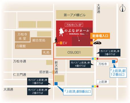 「のぶながホール」は名古屋の中心地・大須、「万松寺ビル8階」に2022年7月1日にオープンする多目的ホールです。