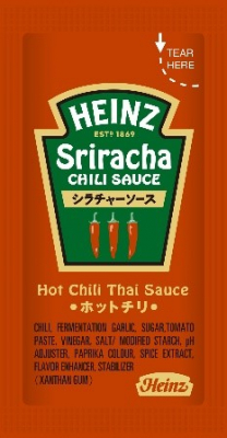 2)タイで生まれてアメリカで大人気となった定番ホットソース「シラチャーソース」の個袋が1つ付いてきます。