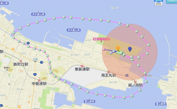 知床半島の遊覧船事故を契機として船舶利用に着目した販売パートナーのエムアイビジョン株式会社(本社:富山県富山市、代表:石浦 満)から、富山県射水市の株式会社新湊観光船にGPS端末による安全管理を提案。同社は富山湾を遊覧する観光クルーズ船の運行事業をしており、乗客・乗員の安全管理のため「ここココ」(R)の導入をいただきました。運行ルートの湾内や運河など、現在の位置情報をリアルタイムで監視し、安全第一の運行をサポートしております。