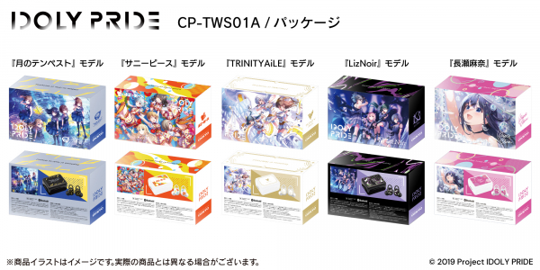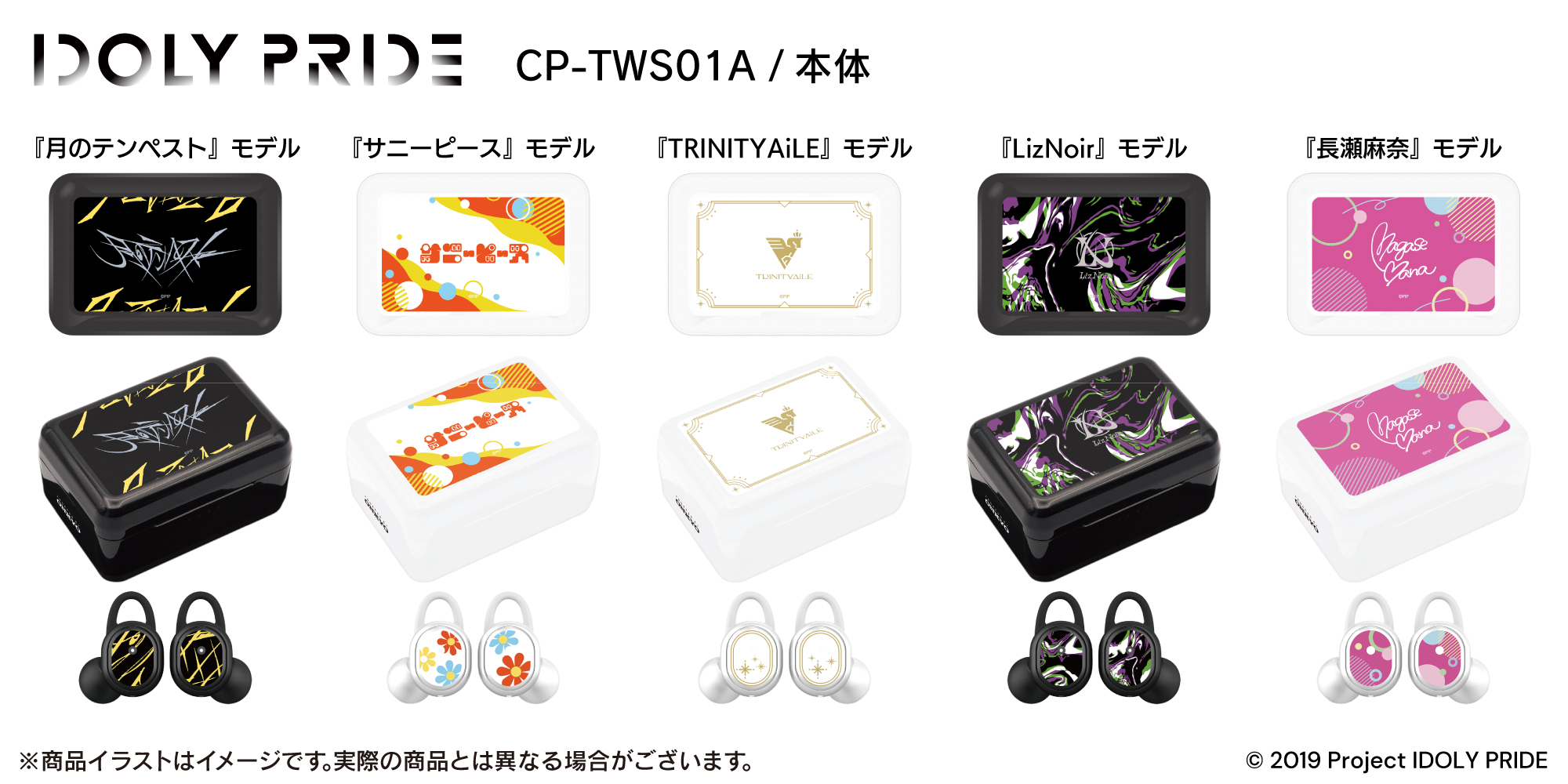 本コラボレーションモデルは、「月のテンペスト」「サニーピース」「TRINITYAiLE」「LizNoir」「長瀬麻奈」の全5種類展開となっており、イヤホン本体にそれぞれを象徴するマークやデザインを印刷加工をしております。また特筆すべきは各イヤホン本体にゲームボイスを使用した7ワードのボイスガイダンスを搭載し限定感を演出しております。