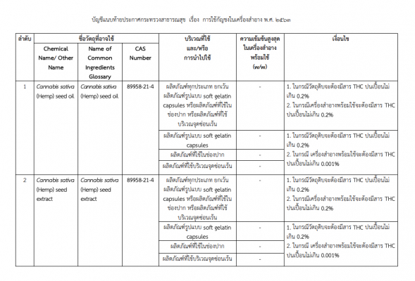 図)省庁発表 :化粧品へのヘンプの使用 B.E. 2563(2020年)