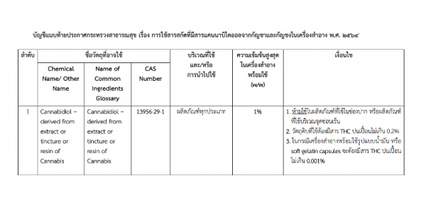 図)省発表。マリファナおよびヘンプからのカンナビジオール含有抽出物の化粧品への使用について B.E. 2564 (2021)