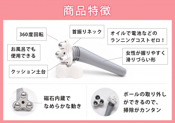 女性が握りやすく滑りづらい形のお作りで片手でコロコロ、リラックスしながらケアを行うことができます