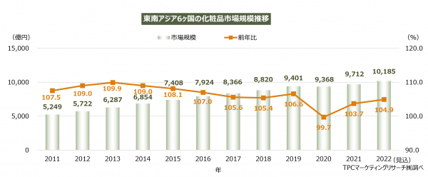 この程、TPCマーケティングリサーチ株式会社(本社=大阪市西区、代表取締役社長=松本竜馬)は、東南アジアの化粧品市場について調査を実施し、その結果を発表した。