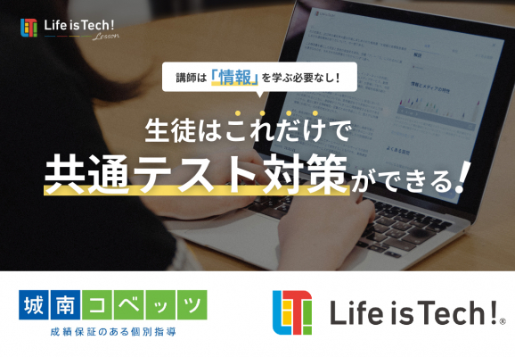 株式会社城南進学研究社(所在地:神奈川県川崎市・代表取締役社長CEO:下村勝己。以下「当社」)が運営する個別指導塾「城南コベッツ」は、ライフイズテック株式会社(所在地:東京都港区・代表取締役CEO:水野雄介。以下「ライフイズテック」)が開発する、共通テスト科目「情報」を学べる「情報AIドリル」を学習塾として初導入。2022年8月より、高校1年生を対象とした特別プログラムを実施いたします。