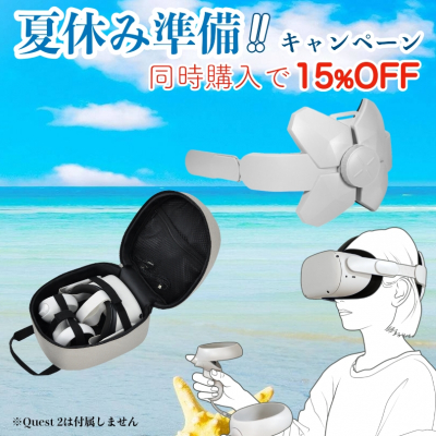 スマートフォンアクセサリー・生活雑貨の企画・販売を行う株式会社ROOX(本社:東京都豊島区)は、同社の「HMDダイヤルストラップ for Meta Quest 2」と「HMDキャリングポーチ」を同時購入することで15% OFFとなる企画『夏休み準備!キャンペーン #1』の開催を発表いたしました。Meta Questを素早くしっかり装着できる快適さで人気の「HMDダイヤルストラップ」と、同ストラップを取り付けたMETA QUEST 2をぴったり納めて持ち運べる「HMDキャリングポーチ」をお得に手に入れられるキャンペーンです。キャンペーンは2022年7月14日から7月25日までの期間限定で、当社のオンラインショップにおいて開催されます。