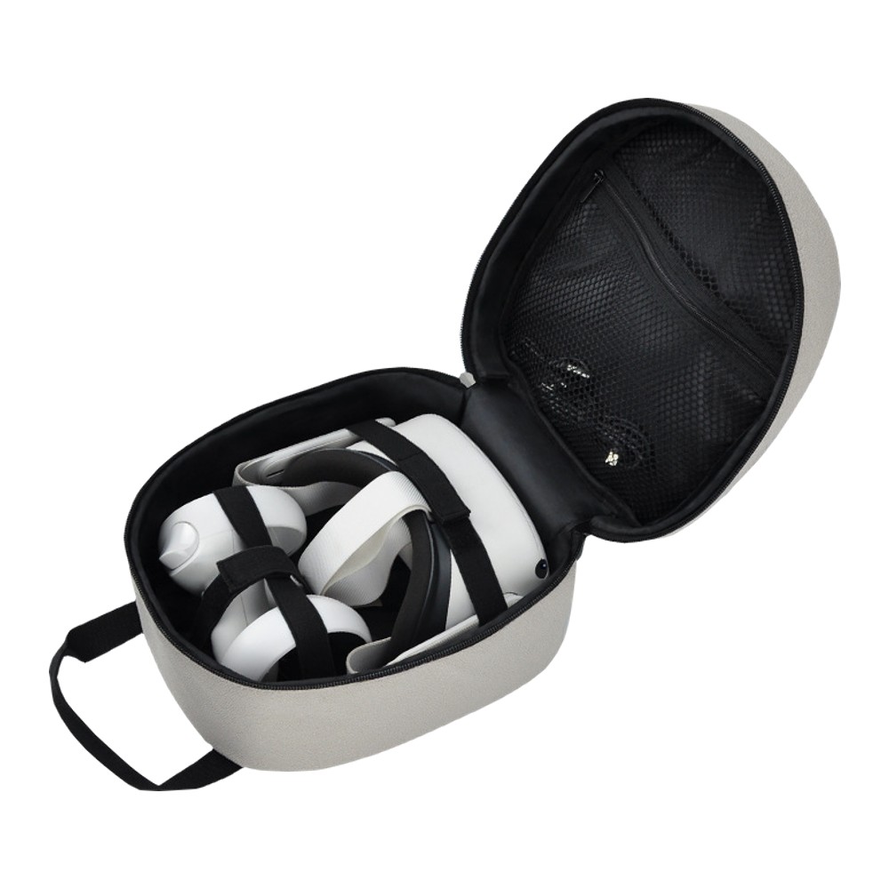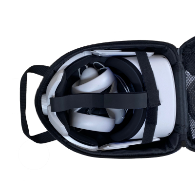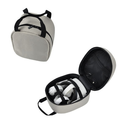 VRディスプレイは、曲線の多い形状であること、コントローラーや充電器などの小さなアクセサリーが多いことから、収納について悩みが多いデバイスです。「HMDキャリングポーチ」は、Meta Quest 2をアクセサリーごと、コンパクトに収納できるソリューションです。