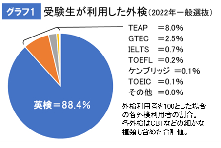 【調査内容】 2022年一般選抜(共通テスト利用入試含む)志願者における各外検の利用者数。
