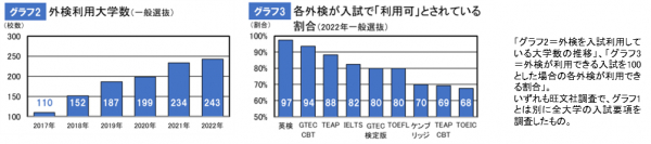 【グラフ2】一般選抜で外検を利用した大学数(2022年=国公私立全762大学中、243大学)。