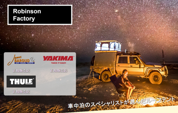 ロビンソンファクトリーではこのルーフテントをメインに取り扱う専門店としてオープンいたしました。